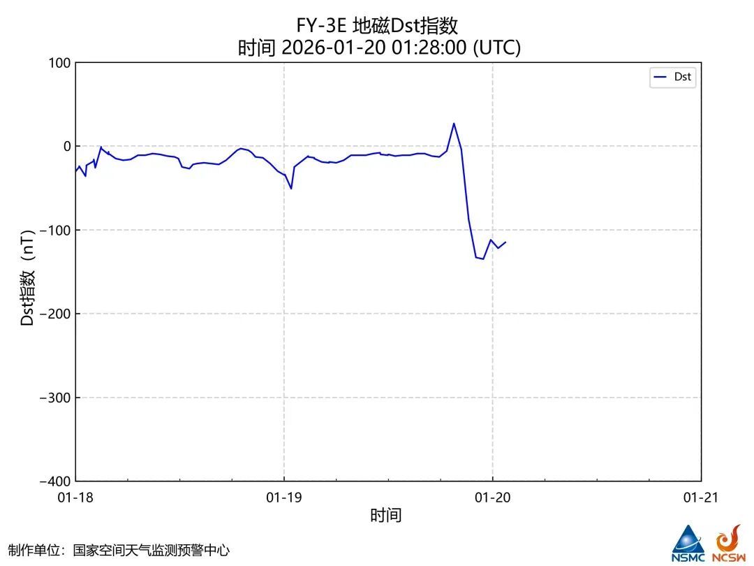 风云三号E星在太空也探测到此次地磁活动,随着磁暴的开始,地磁指数的数值快速下探。