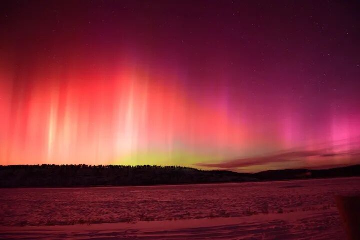 1月20日凌晨在黑龙江省漠河市北极村拍摄的绚丽极光。新华社发(郭昕宇 摄)