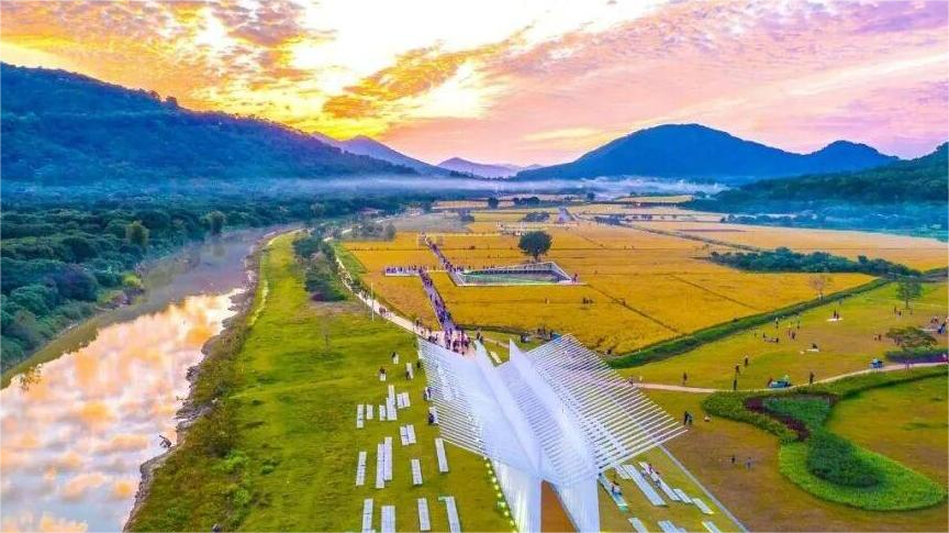 沿着木栈道漫步,你可以看到希望之翼、漂洋过海、时光之门、时光穗稻、节气之轮、丰收之台等特色景观,这些充满设计感的艺术装置与金色的稻田相映成趣,是拍照打卡的绝佳背景。